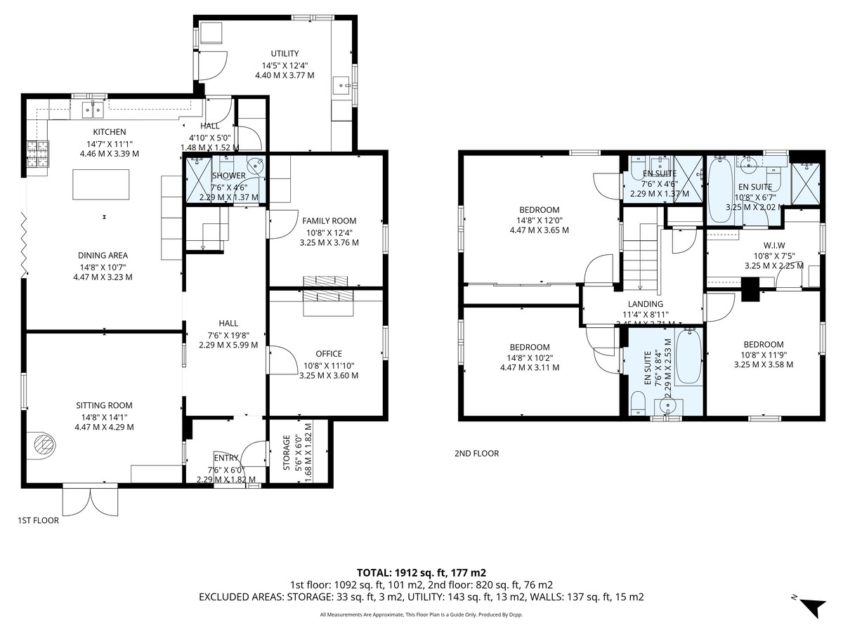 First Floor Upstairs are three superb bedroom suites, each with its own private en-suite bathroom or shower room and all enjoying wonderful far-reaching views across open countryside. The principal suite is especially noteworthy, offering a generous bedroom area, en-suite, and a dedicated dressing area.