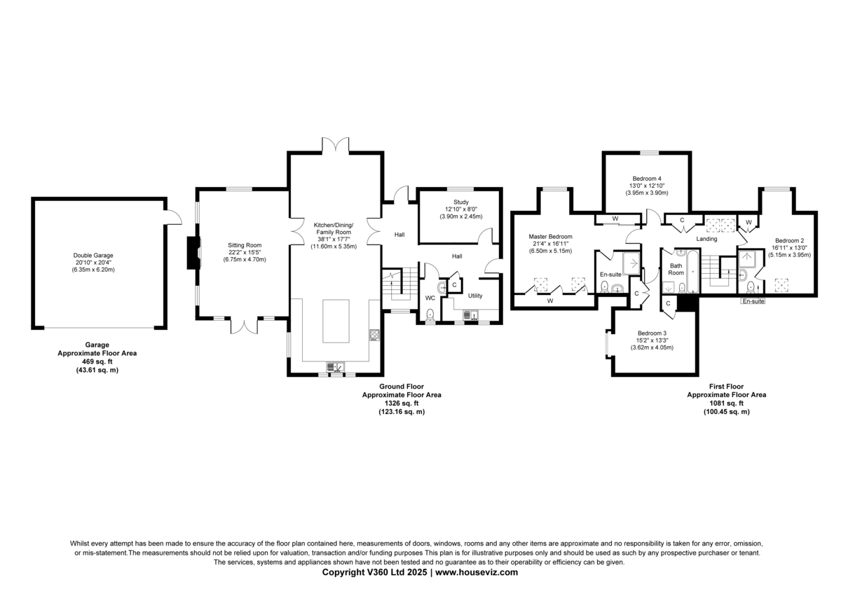OUTSIDE The property sits within a substantial plot, enclosed at the front by post and rail fencing with a pair of 5-bar gates opening onto a sweeping driveway. A detached double garage features an electric up-and-over door, with lighting and power supplied internally. A paved path leads to the front door and continues along both sides of the property, providing access to the rear gardens. At the back, a paved terrace extends from the house, with steps descending to the large, established gardens. Bordered by mature trees in several areas, the outdoor space is predominantly laid to lawn. In all, about 0.60 acres.