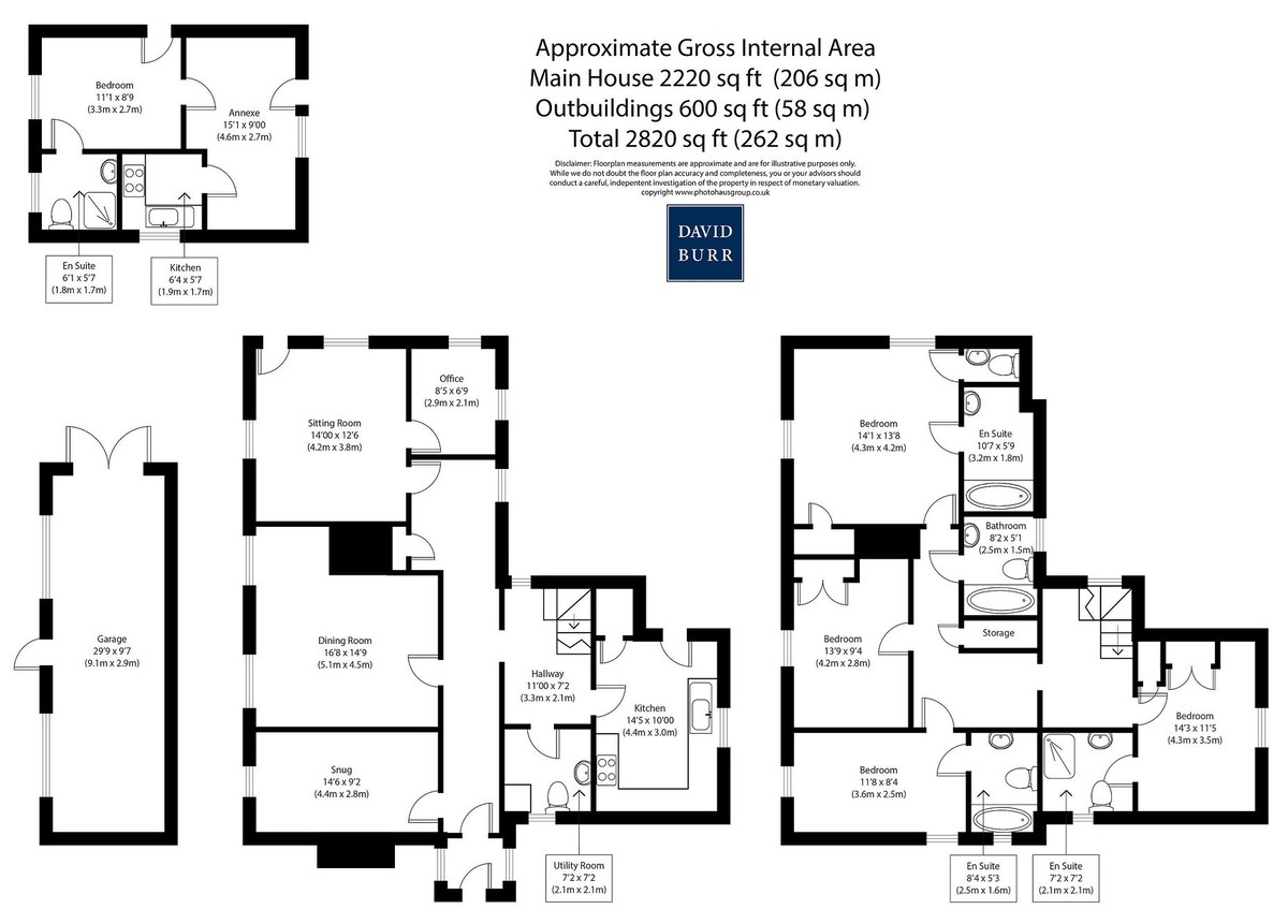 The four bedrooms, three of which are en-suite, are generously proportioned and retain the character of the property, complemented by a family bathroom. The annexe offers a self-contained space with living, kitchen, bedroom, and wet room facilities, providing additional flexibility for guests, rental income, or extended family living.