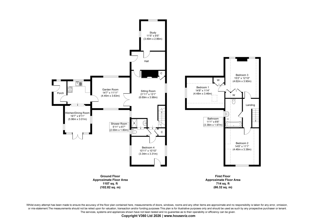 GARDEN ROOM A lovely light double-aspect room enjoying stunning views towards the village church over undulating countryside, whilst featuring a built-in bookcase.