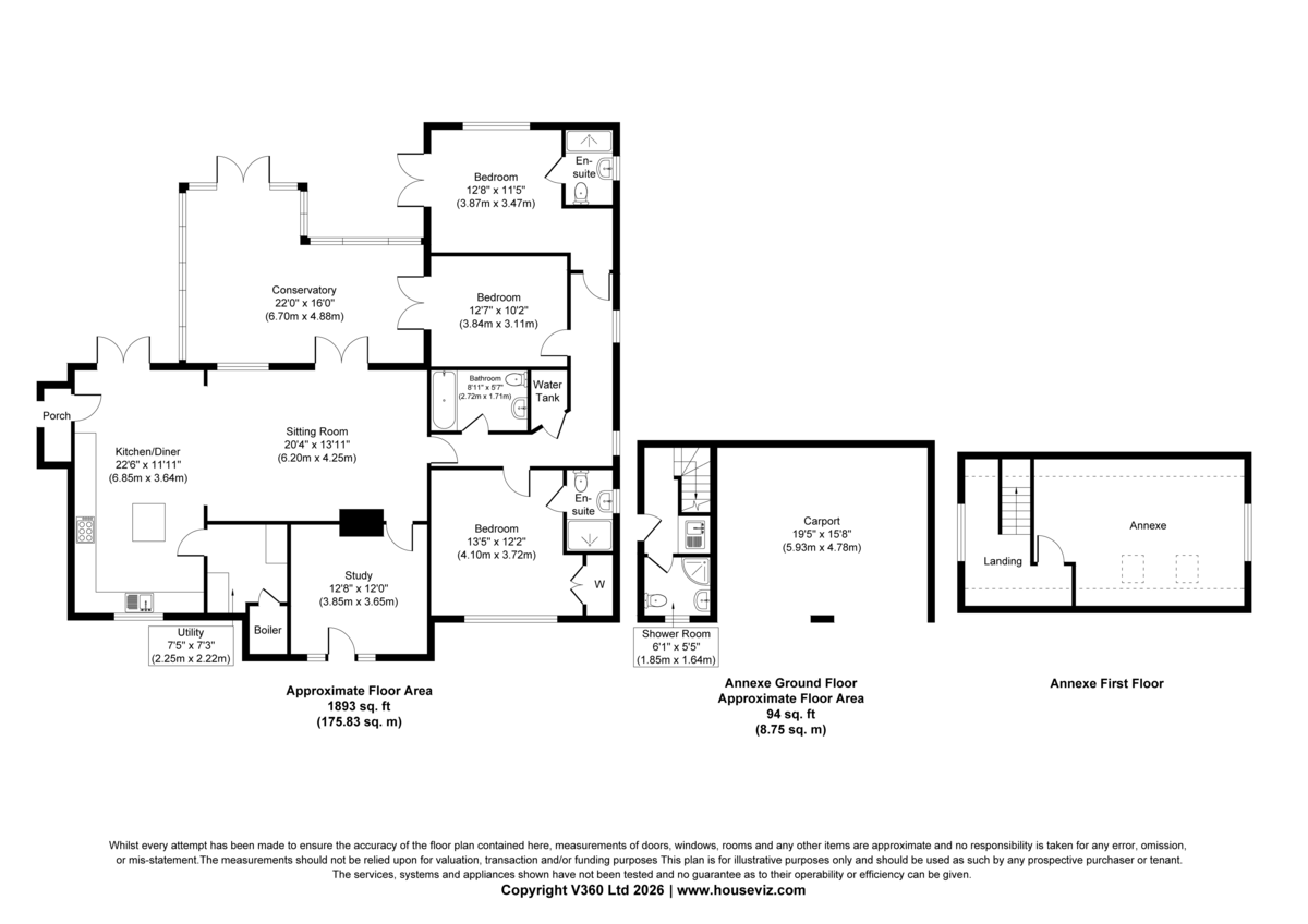 OUTSIDE The property is approached via a gravel driveway providing ample parking and turning for several vehicles, in turn leading to the DOUBLE CART LODGE and ANNEXE. The annexe comprises a lobby area with kitchenette featuring a stainless-steel sink and drainer and plumbing for a washing machine. There is a shower room with shower, WC, and wash hand basin, and on the first floor a spacious landing with storage in the eaves and space for a fridge, and a bedroom with double-aspect outlook.