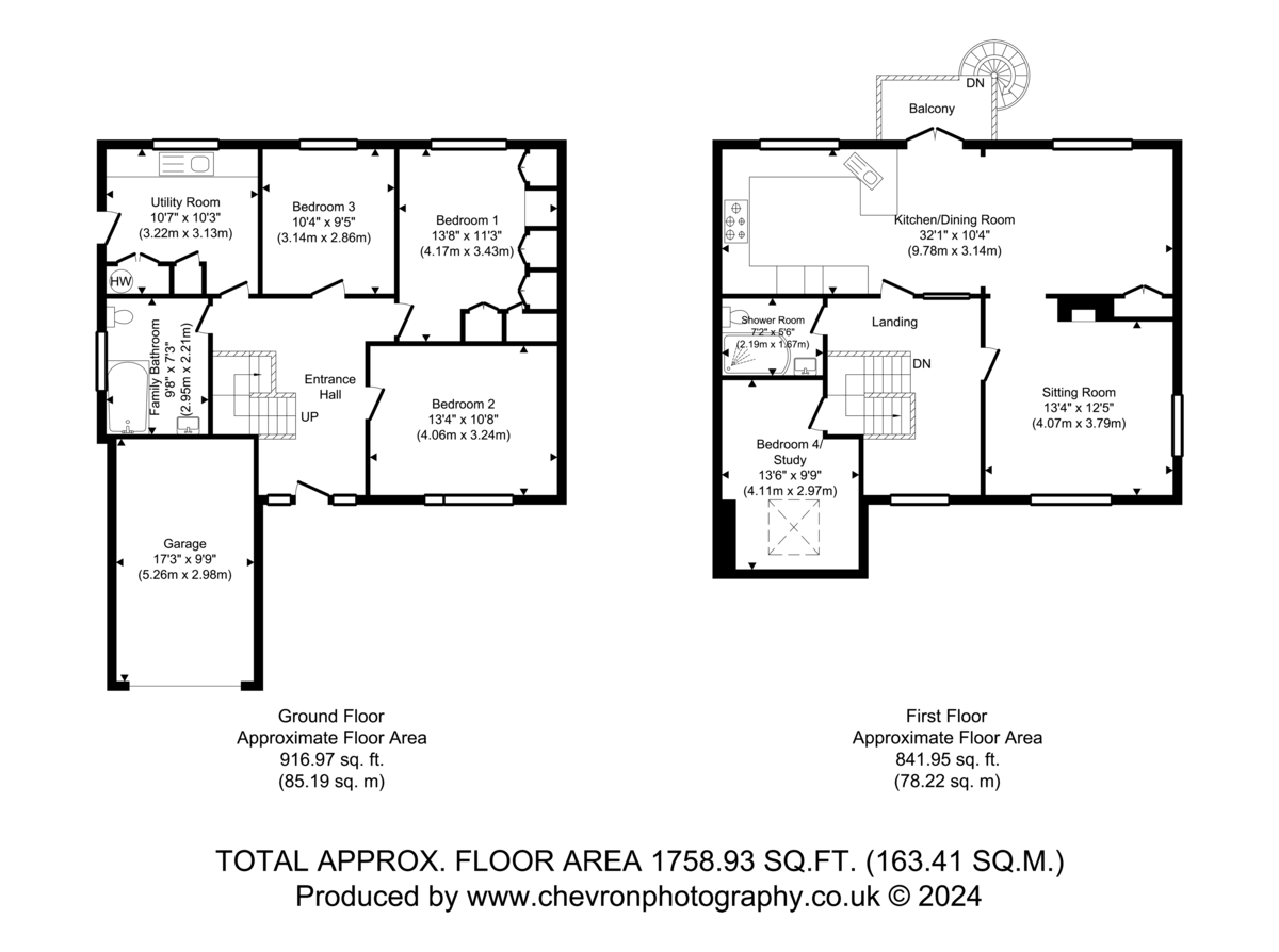 KITCHEN/DINING ROOM: 32' 1" x 10' 4" (9.78m x 3.14m) Fitted with an extensive range of base and wall units with composite preparation surfaces over and patterned tiling above. A sink unit to corner is enhanced by a vegetable drainer to side, mixer tap above and separate filtered water tap. Integrated appliances include a Siemens oven with grill above, four ring induction hob, gas burner and extraction hood. Integrated fridge/freezer, dishwasher and scales. Range of LED spotlights, casement window range to rear affording an elevated aspect across the rear gardens and enjoying a direct, open link with the DINING ROOM. Enjoying a direct, open plan link with the kitchen with wood effect flooring throughout, LED spotlights and casement window range to rear and wall mounted heated towel radiator. Panel glazed double doors to the rear balcony with gated access to the spiral staircase descending to the garden.