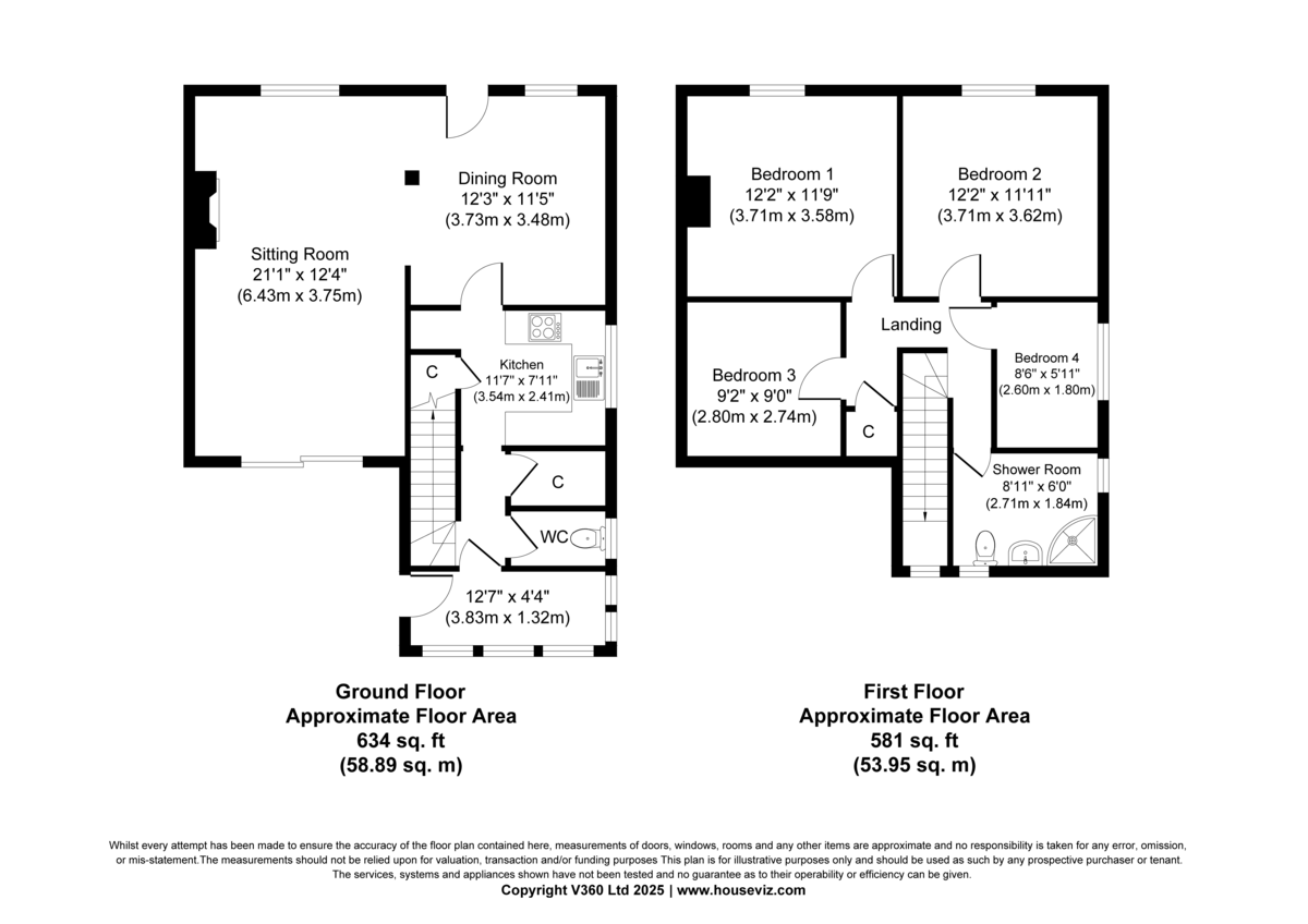 SHOWER ROOM Fitted with a WC, wash basin and tiled shower cubicle.